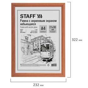 Рамка формата А4 (21х30 см) выполнена из МДФ под дерево в цвете "светлое дерево", за счет чего отлично впишется в домашний и деловой интерьер. Имеется возможность вертикального и горизонтального подвеса. Ширина багета - 17 мм. Благодаря экрану из акрилового стекла рамка является менее хрупкой. Микрогофрокартон обеспечивает плотное прилегание и отсутствие в будущем деформации содержимого в рамке. Поставляется в термоусадочной пленке, которая гарантирует сохранность рамки при транспортировке, отсутствие сколов и потертостей.
