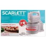 Миксер SCARLETT SC-HM40B03 на подставке 500 Вт, 5 скоростей, 2 венчика, 2 крюка для теста, чаша, белый
