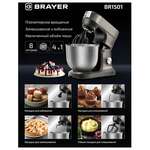Миксер планетарный BRAYER BR1501, 1200 Вт, 10 скоростей, 3 насадки, металлическая чаша 8 л, коричневый