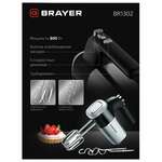 Миксер BRAYER BR1302, 800 Вт, 5 скоростей, 2 венчика, 2 крюка для теста, черный/серебро