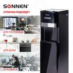 Кулер для воды SONNEN FSE-03B, напольный, нагрев/охлаждение, НИЖНЯЯ ЗАГРУЗКА, 3 крана, черный, 454998