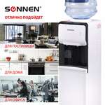 Кулер для воды SONNEN FSE-02MB, напольный, НАГРЕВ/ОХЛАЖДЕНИЕ ЭЛЕКТРОННОЕ, 3 крана, белый, 455000