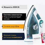 Утюг SONNEN SI-227, 2000 Вт, антипригарное покрытие, бирюзовый/белый, 453505