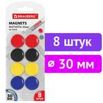 Магниты диаметром 30 мм, КОМПЛЕКТ 8 штук, цвет АССОРТИ, в блистере, BRAUBERG, 230758