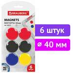 Магниты БОЛЬШОГО ДИАМЕТРА, 40 мм, КОМПЛЕКТ 6 штук, цвет АССОРТИ, в блистере, BRAUBERG, 230757