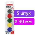 Магниты диаметром 30 мм, КОМПЛЕКТ 5 штук, цвет АССОРТИ, в блистере, BRAUBERG, 231729