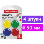 Магниты БОЛЬШОГО ДИАМЕТРА, 50 мм, КОМПЛЕКТ 4 штуки, цвет АССОРТИ, в блистере, BRAUBERG, 231736