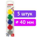Магниты БОЛЬШОГО ДИАМЕТРА, 40 мм, КОМПЛЕКТ 5 штук, цвет АССОРТИ, в блистере, BRAUBERG, 231730