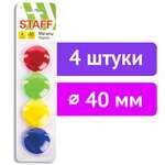 Магниты БОЛЬШОГО ДИАМЕТРА, 40 мм, НАБОР 4 штуки, цвет АССОРТИ, в блистере, STAFF "Basic", 237484