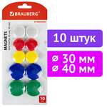 Магниты BRAUBERG "STANDARD", НАБОР 30 мм - 6 шт., 40 мм - 4 шт., ассорти, 237471