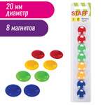 Магниты МАЛОГО ДИАМЕТРА, 20 мм, КОМПЛЕКТ 8 штук, цвет АССОРТИ, в блистере, STAFF "Basic", 236403
