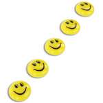 Магниты СРЕДНЕГО ДИАМЕТРА, 30 мм, НАБОР 5 штук, с рисунком СМАЙЛИК, жёлтые, в блистере, STAFF "Basic", 237483