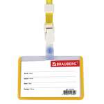 Бейдж школьника горизонтальный (55х90 мм), на ленте со съемным клипом, ЖЕЛТЫЙ, BRAUBERG, 235764