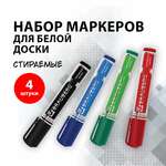 Маркеры стираемые для белой доски НАБОР 4 ЦВЕТА, BRAUBERG "ORIGINAL", 3 мм, 152120