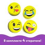 Стиратели магнитные для магнитно-маркерной доски ЮНЛАНДИЯ "Смайлик", 50 мм, КОМПЛЕКТ 4 ШТ., желтые, с рисунком, 237504
