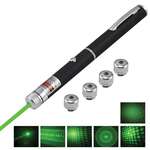 Указка лазерная, радиус 1000 м, зеленый луч, плюс 5 насадок, черный корпус, клип, футляр, GP-02