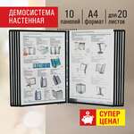 Демосистема настенная, регулируемый угол наклона, 10 цветных панелей А4, черная, BRAUBERG "SOLID", 236720