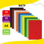 Цветной фетр для творчества А4 ЮНЛАНДИЯ 10 ЯРКИХ ЦВЕТОВ, толщина 1 мм, с европодвесом, 662048