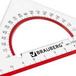 Треугольник пластиковый, угол 45, 13 см, BRAUBERG "Crystal", с транспортиром, прозрачный, с выделенной шкалой, 210293