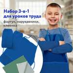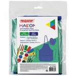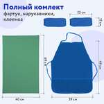 Набор для уроков труда ПИФАГОР: клеёнка ПВХ зеленая, 69х40 см, фартук и нарукавники синие, 227060