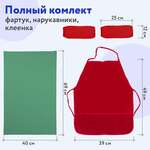 Набор для уроков труда ПИФАГОР: клеёнка ПВХ зеленая, 69х40 см, фартук и нарукавники красные, 227061