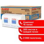 Полотенца бумажные 200 шт., LAIMA (H3) UNIVERSAL WHITE, 1-слойные, белые, КОМПЛЕКТ 15 пачек, 23x20,5, V-сложение, 111342