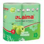 Бумага туалетная бытовая, спайка 4 шт., 2-х слойная, (4х19 м), LAIMA, аромат яблока, 128722