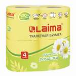 Бумага туалетная бытовая, спайка 4 шт., 2-х слойная, (4х19 м), LAIMA, аромат ромашки, 128720
