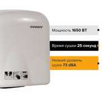 Сушилка для рук SONNEN HD-165, 1650 Вт, пластиковый корпус, белая, 604191
