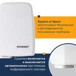 Сушилка для рук SONNEN HD-688, 2000 Вт, пластиковый корпус, белая, 604192