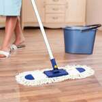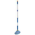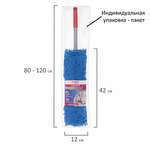 Швабра с флаундером 40 см, черенок 80-120 см, еврорезьба, насадка МОП микрофибра СИНЕЛЬ, индивидуальная упаковка пакет, LAIMA, 606314
