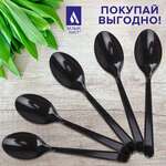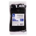 Ложка столовая одноразовая пластиковая 165 мм, черная, КОМПЛЕКТ 100 шт., СТАНДАРТ, LAIMA, 607833
