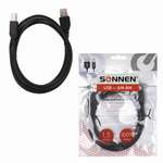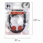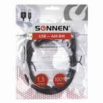 Кабель USB2.0 AM-BM, 1,5 м, SONNEN, медь, для подключения периферийных устройств - принтеров, сканеров, МФУ, плоттеров, черный, 513118