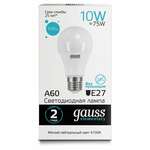 Лампа светодиодная GAUSS, 10(75)Вт, цоколь Е27, груша, нейтральный белый, 25000 ч, LED A60-10W-4100-E27, 23220