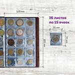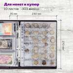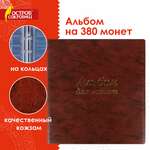 Альбом нумизмата для 380 монет (диаметр до 38 мм) и купюр, 253х238 мм, коричневый, ОСТРОВ СОКРОВИЩ, 237961