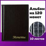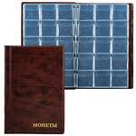 Альбом нумизмата для 120 монет, 125х175 мм, ПВХ, коричневый, STAFF, 238074