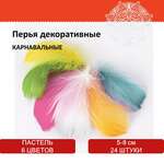 Перья декоративные "Карнавальные", 5-8 см, 24 шт., 6 цветов, пастель, ассорти, ОСТРОВ СОКРОВИЩ, 661377