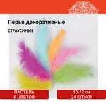 Перья декоративные страусиные, 10-12 см, 24 шт., 6 цветов, пастель, ассорти, ОСТРОВ СОКРОВИЩ, 661379