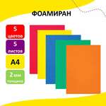 Пористая резина/фоамиран А4, 2 мм ЮНЛАНДИЯ 5 листов, 5 цветов, яркие цвета, 662053