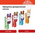 Прищепки декоративные "Зайчики", 4 штуки, 3,5 см, ассорти, ОСТРОВ СОКРОВИЩ, 661301