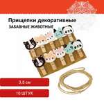 Прищепки декоративные "Забавные животные", 10 штук, 3,5 см, ассорти, со шпагатом, ОСТРОВ СОКРОВИЩ, 662672