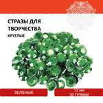 Стразы для творчества "Круглые", зеленые, 12 мм, 30 грамм, ОСТРОВ СОКРОВИЩ, 661199