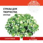 Стразы для творчества "Круглые", салатовый, 12 мм, 30 грамм, ОСТРОВ СОКРОВИЩ, 661195