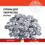 Стразы для творчества "Круглые", серебро, 12 мм, 30 грамм, ОСТРОВ СОКРОВИЩ, 661197