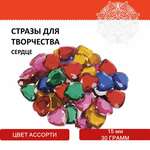 Стразы для творчества "Сердце", цвет ассорти, 15 мм, 30 грамм, ОСТРОВ СОКРОВИЩ, 661212