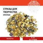 Стразы для творчества "Круглые", золото, 8 мм, 30 грамм, ОСТРОВ СОКРОВИЩ, 661204