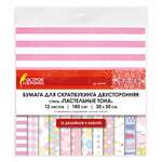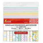 Бумага для скрапбукинга 30х30 см "Пастельные тона", двусторонняя, 12 листов, 12 дизайнов, 180 г/м2, ОСТРОВ СОКРОВИЩ, 662763