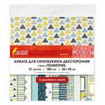 Бумага для скрапбукинга 30х30 см "Геометрия", двусторонняя, 12 листов, 12 дизайнов, 180 г/м2, ОСТРОВ СОКРОВИЩ, 662762