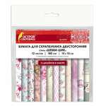 Бумага для скрапбукинга 15х15 см "Шебби-шик", двусторонняя, 12 листов, 12 дизайнов, 180 г/м2, ОСТРОВ СОКРОВИЩ, 662761