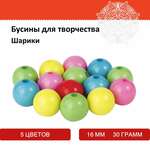 Бусины для творчества "Шарики", 16 мм, 30 грамм, 5 цветов, ОСТРОВ СОКРОВИЩ, 661259